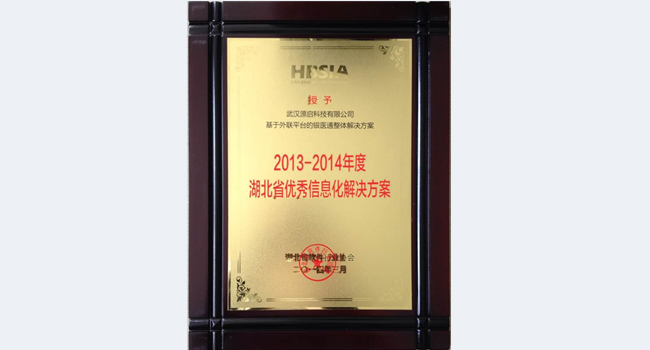基于外联平台的银医通整体解决方案收录于——《2013-2014湖北省优秀信息化解决方案》。